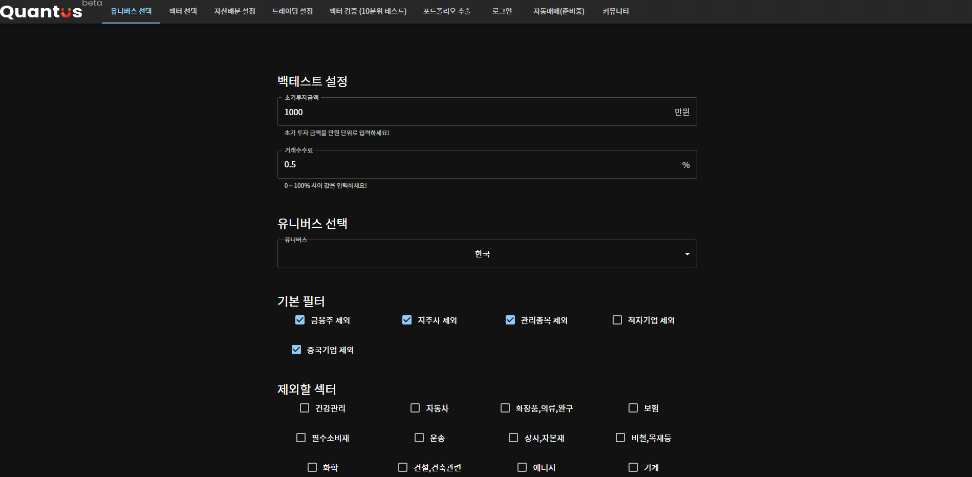 미국장도 선택해서 퀀트 전략을 만들어 볼 수 있습니다.