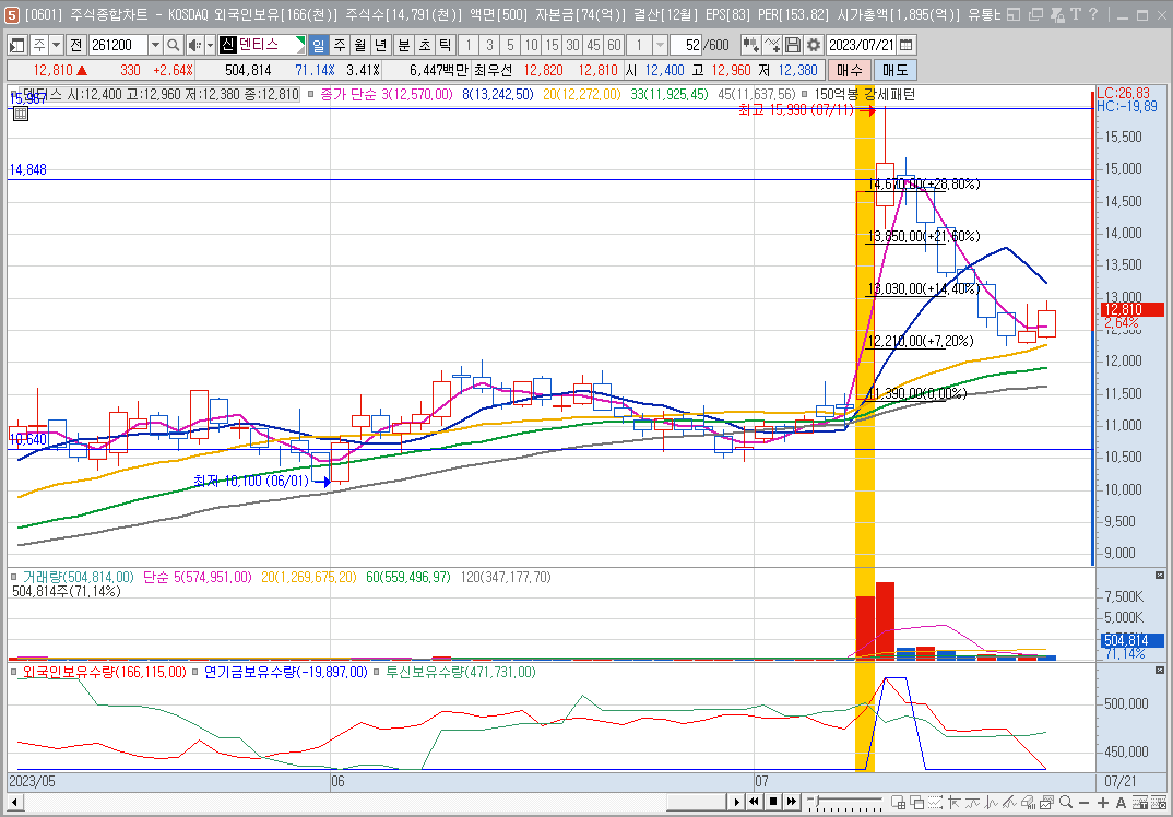 - 14830원임. > 3일 이평선말고 5일 이평선에서 지지 받고 있는 모습이다.