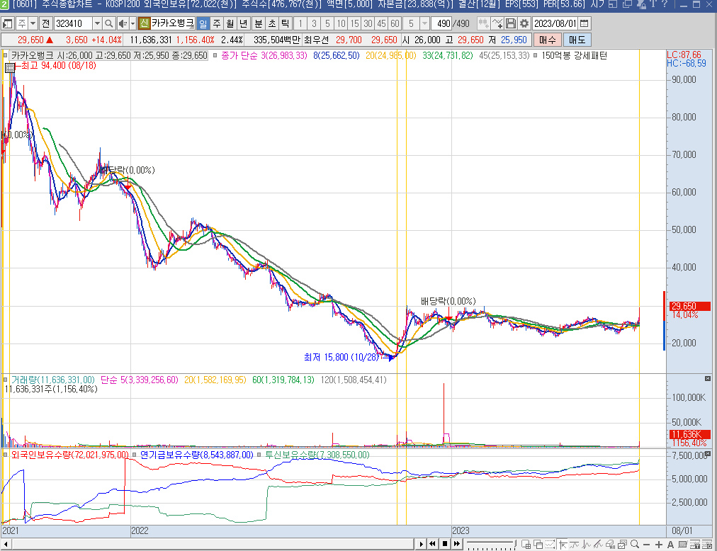 [주가동향] 카카오뱅크, 외인 매수세에 주가 '급등세'... '전세대출 금