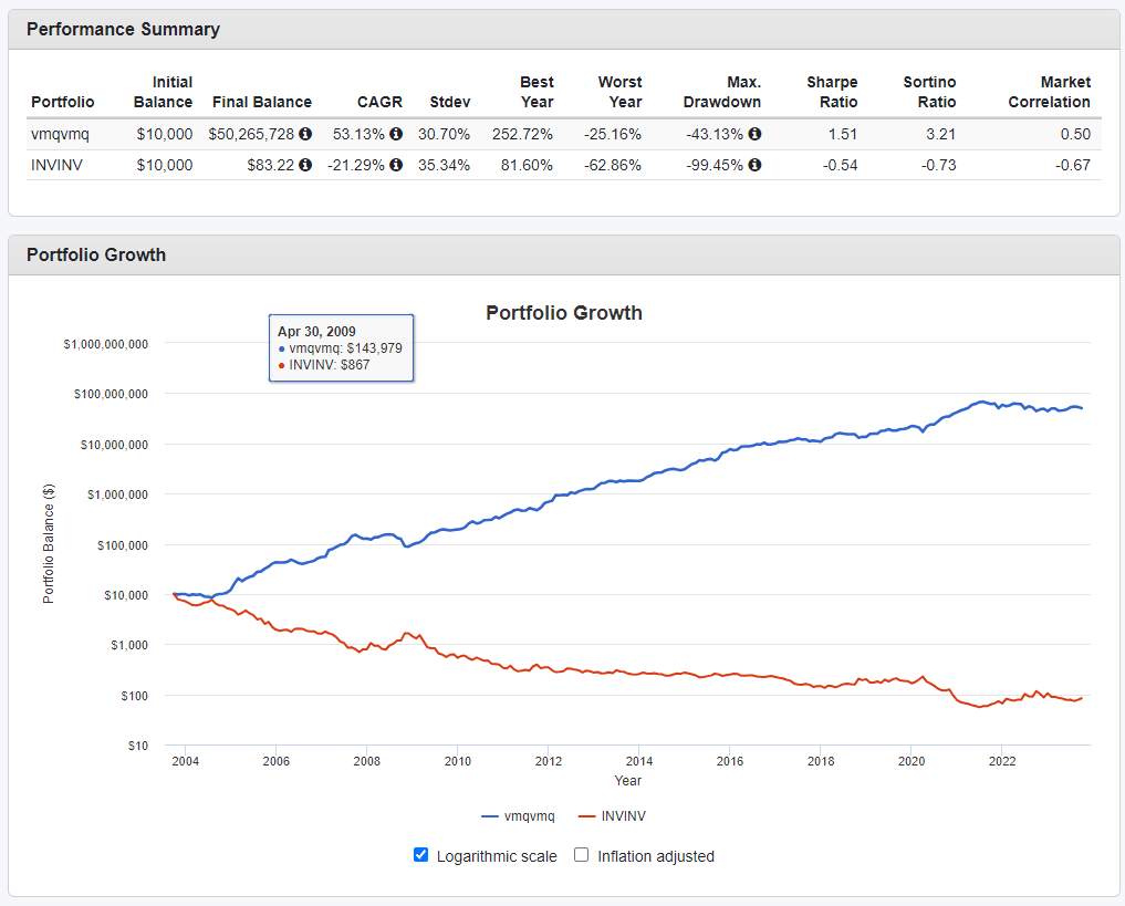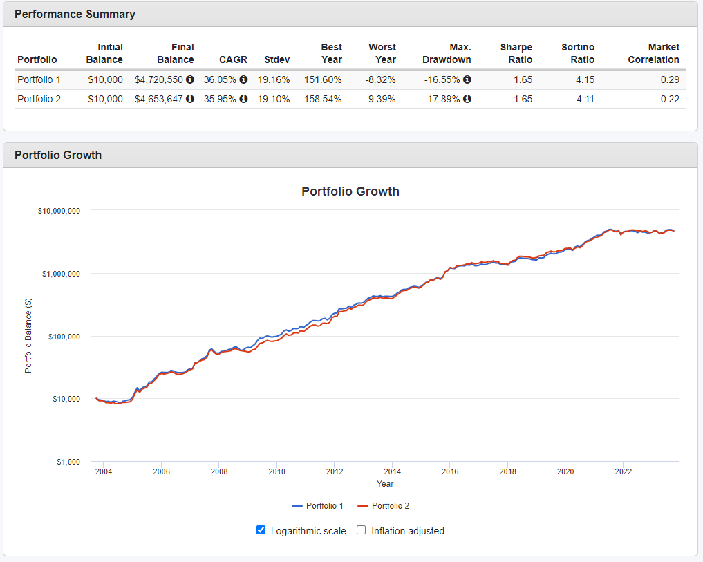 Monthly Correlations을 보면 -0.6의 상관관계다. 역시 매우 흡족스럽다.